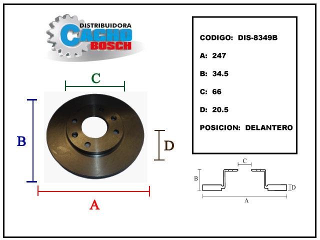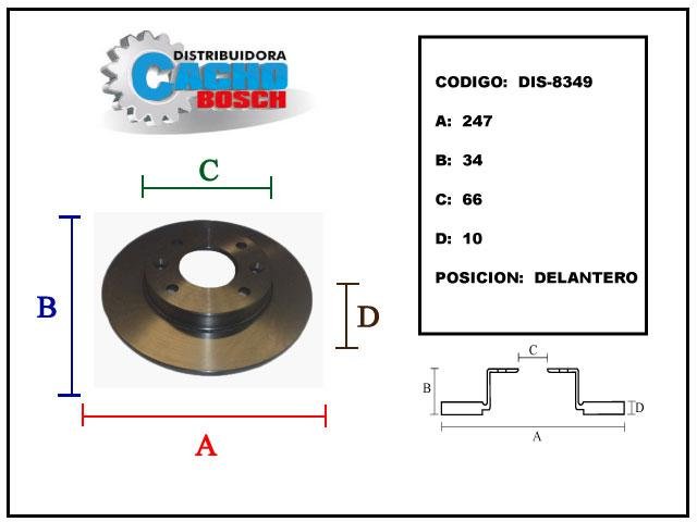 DIS8349C - DISCO DE FRENO TRASERO SOLIDO PEUGEOT 405 SRI - 307 1.6 16v DIAMETRO EXTERIOR 247 / ALTURA 34.5 / DIAM INTERIOR 71 / ESPESOR 10 / AGUJEROS 4